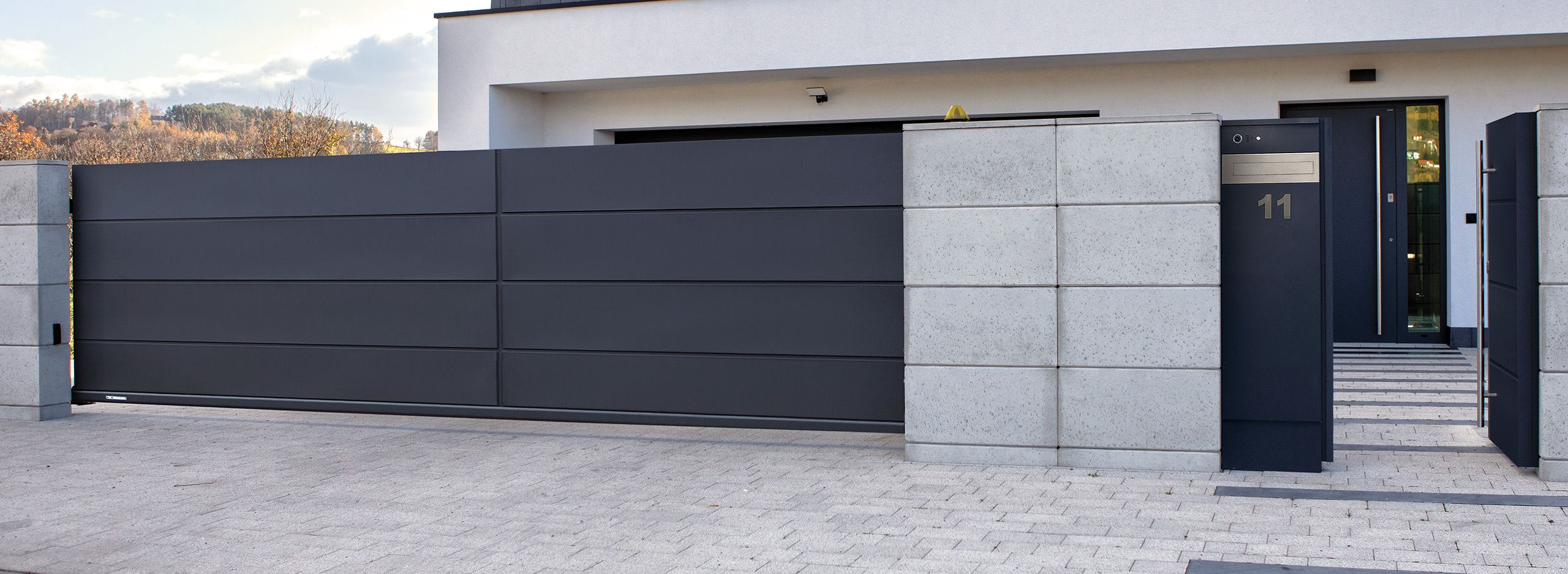 Soluzione ideale per chi apprezza funzionalità e affidabilità. I cancelli scorrevoli scorrono lateralmente su binario, richiedendo spazio solo lungo il muro di recinzione. Dotati di sistemi di sicurezza che bloccano il movimento in caso di ostacoli, proteggendo persone e animali. Sistema DUPLEX anticorrosione per prestazioni durature nel tempo. Perfetti per ingressi carrai di grandi dimensioni.